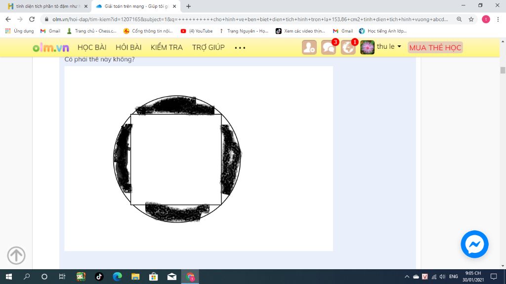 bạn ơi sao độ dài một cạnh của hình vuông lại bằng bán kính hình tròn nó phải lớn hơn chứ