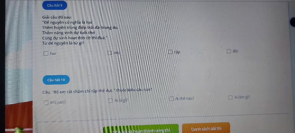 Câu 5 : sa tít, xe buýt, cuống quýt