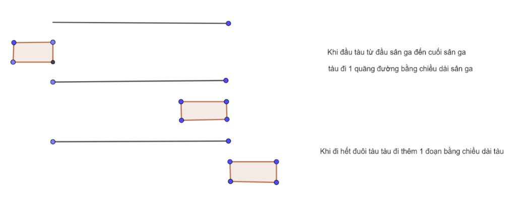 Khi tàu ấy chạy ngang qua văn phòng ga từ đầu máy đến hết toa cuối cùng thì đoàn tàu đi được đúng 1 đoạn bằng chiều dài tàu