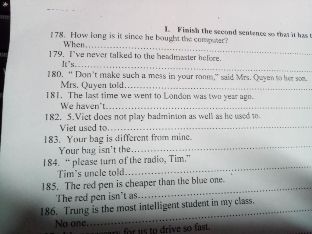 180. Mrs. Quyen told her son not to make such a mess in his room.