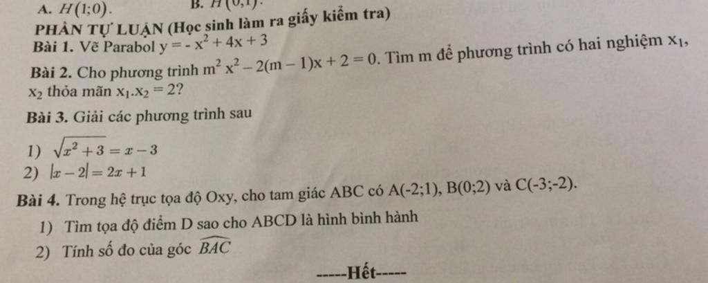 Tọa độ đỉnh của parabol là: