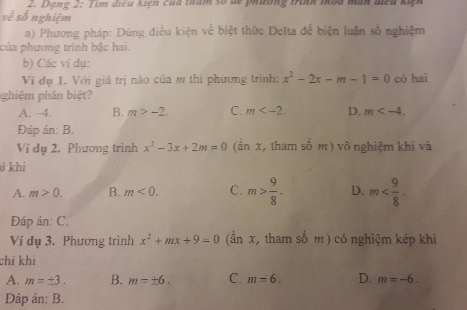 a) Phương pháp: Dùng điều kiện về biệt thức Delta để biện luận số nghiệm