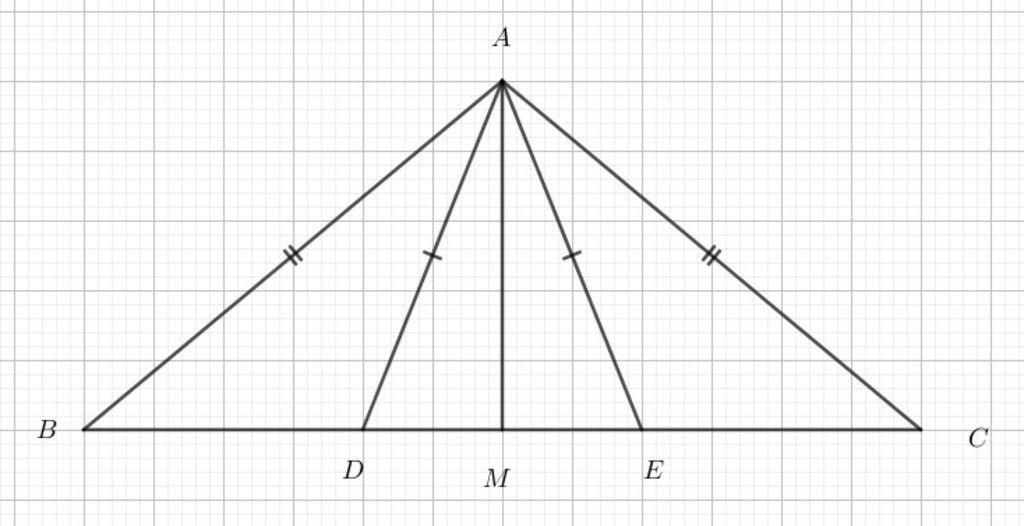 MB=MC, BD=CE suy ra DM=ME suy ra AM là trung tuyến tam giac AED (2)
