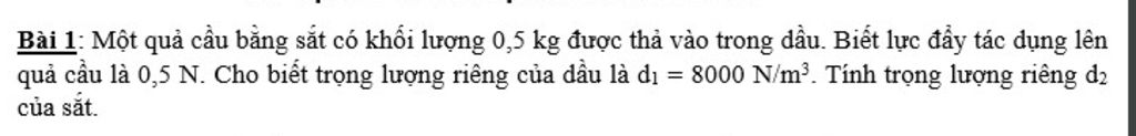 Ta có: $F_A = d_1.V \to V = \dfrac{F_A}{d_1}$