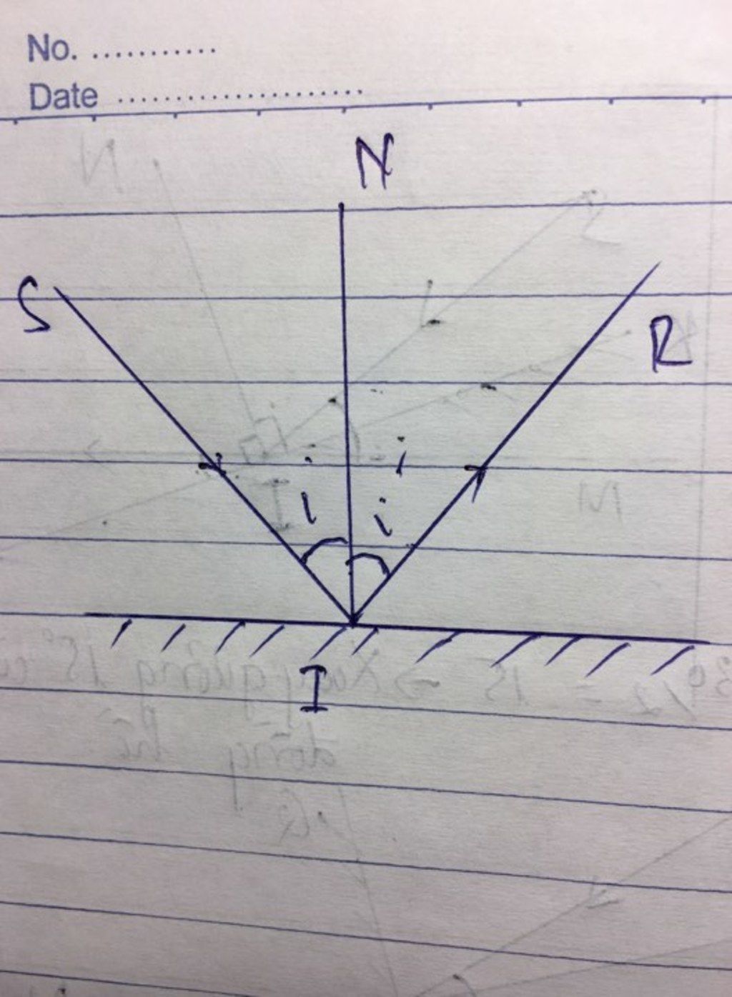 - Vẽ đường pháp tuyến NI vuông góc với gương phẳng tại điểm tới I.