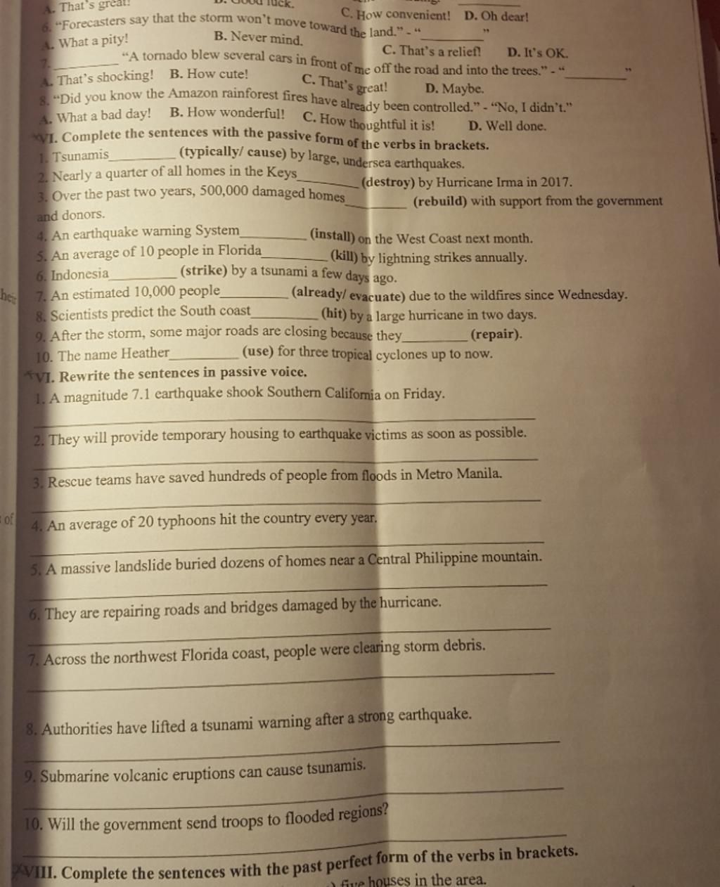 6. Indonesia was striken (strike) by a tsunami a few days ago.