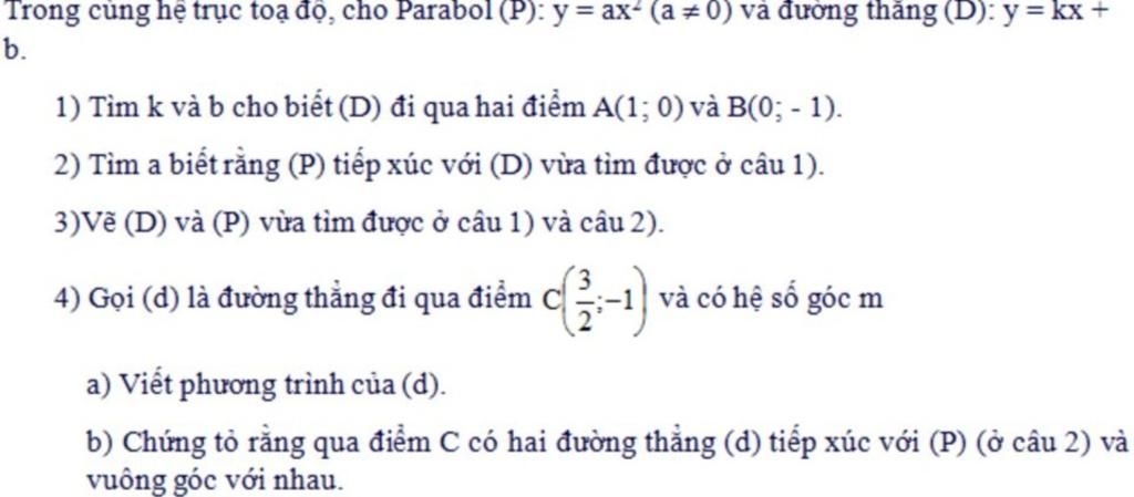 Vậy đt (d) là đt đi qua A,B, (P) là đường cong đỉnh O; đi qua (2;1) và (-2;1)
