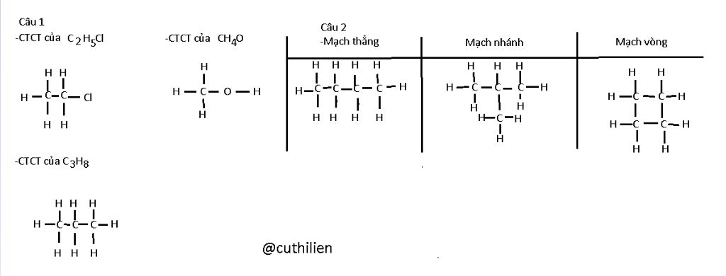 -Công thức cấu tạo là công thức biểu diễn đầy đủ liên kết giữa các nguyên tử trong phân tử