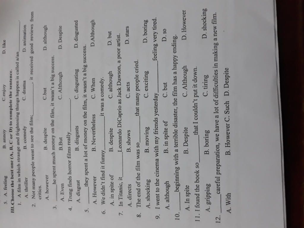 Những câu này mik thấy nó khá là khó đối vs mik nên bạn tham khảo nếu có sai thì bỏ qua