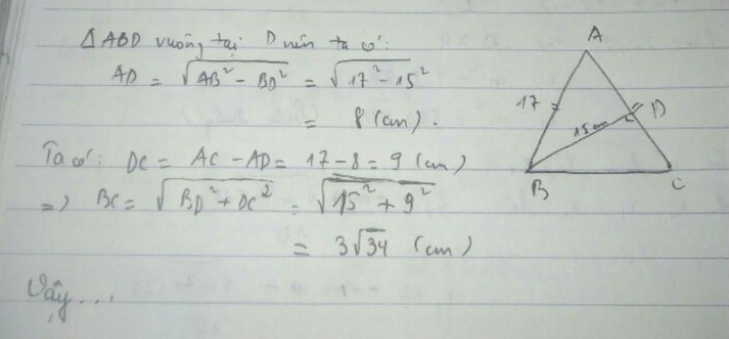 => BC = √306 ≈ 17,5 cm