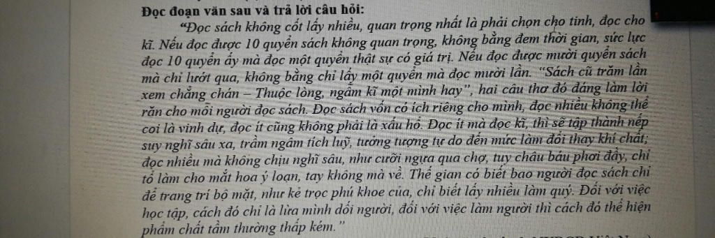 2.Nội dung của đoạn trích là khẳng định cách đọc sách đúng đắn đó là đọc kỹ, đọc nghiền ngẫm và tiếp thu tinh hoa tri thức từ sách chứ không phải đọc để lấy số lượng mà chẳng đọng lại được gì