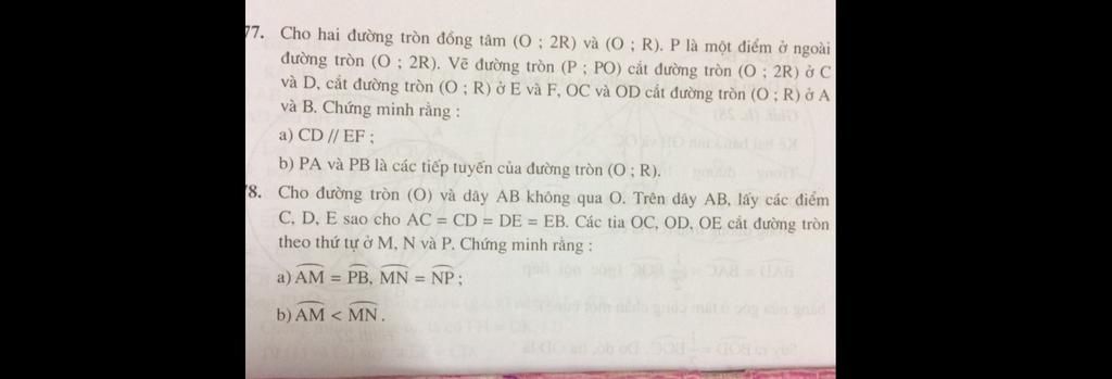 77. Cho hai đường tròn đồng tâm (0; 2R) và (O; R). P là một điểm ở ngoài