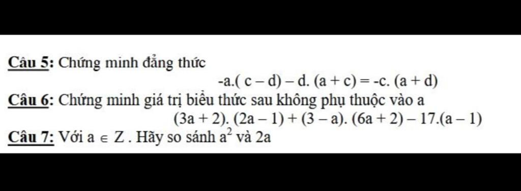 Câu 6: Chứng minh giá trị biểu thức sau không phụ thuộc vào a