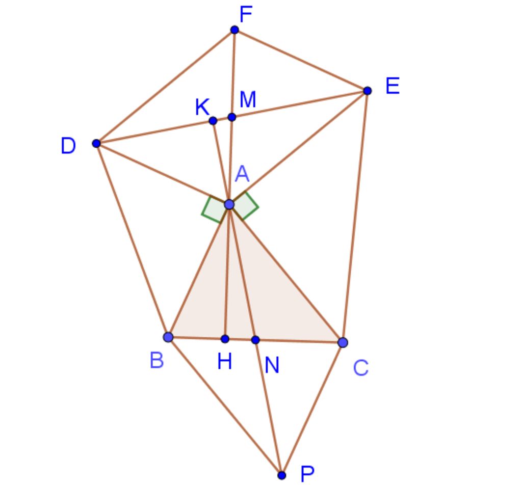 $M$ là trung điểm $DE$$\to $$M$ cũng là trung điểm $FA$