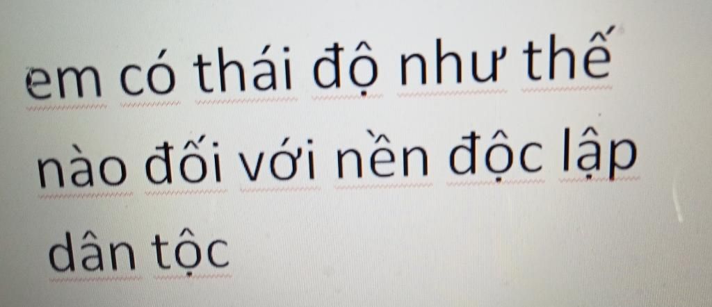 Nền độc lập là một nền mà ở đất nước nào cũng muốn có trên thế giới . Vậy sao chúng ta lại không muốn nó cơ chứ nhỉ ? Đối với riêng bản thân em , em rất coi trọng và yêu quý nó . Bởi vì nếu không có nền độc lập thì đất nước Việt Nam ta sẽ ra sao ?