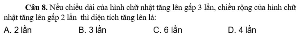 Vậy diện tích tăng số lần là: 3 × 2 = 6 (lần)