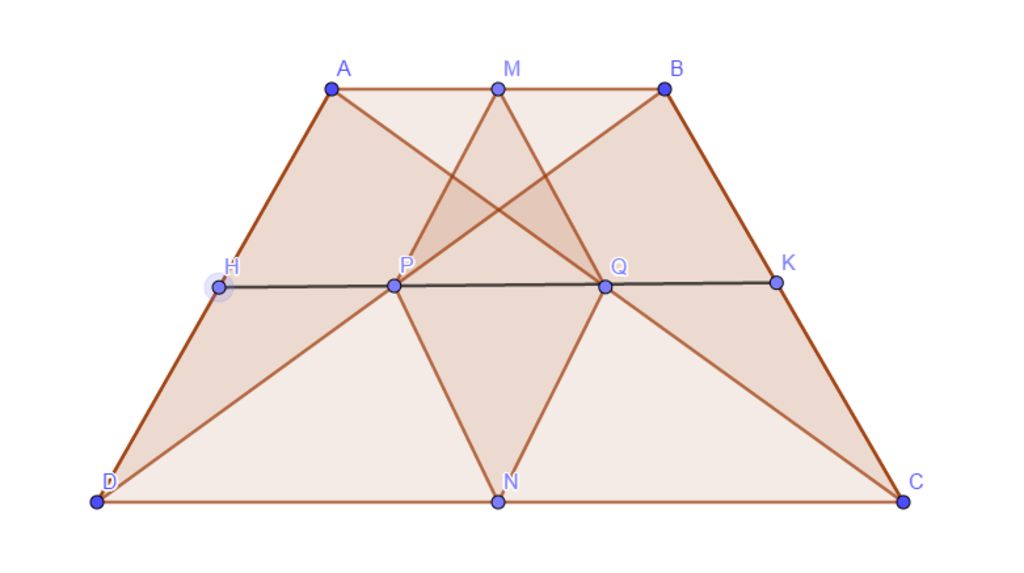 Ta có HK // CD ( Vì HK là đường trung bình của hình thang ABCD)