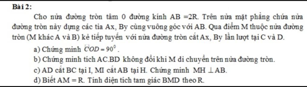 tròn (M khác A và B) kẻ tiếp tuyến với nửa đường tròn cắt Ax, By lần lượt tại C và D.