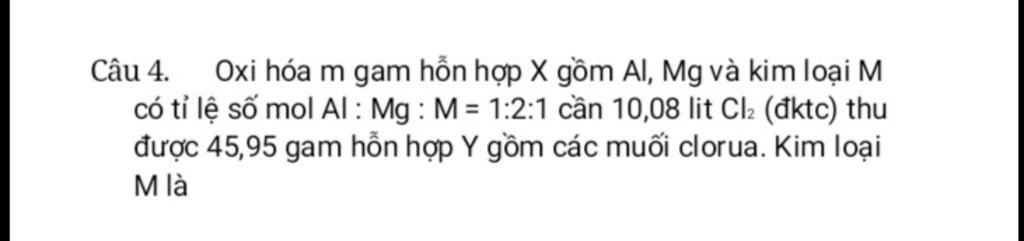 Ta có `:n_{Al}:n_{Mg}:n_M=1:2:1`