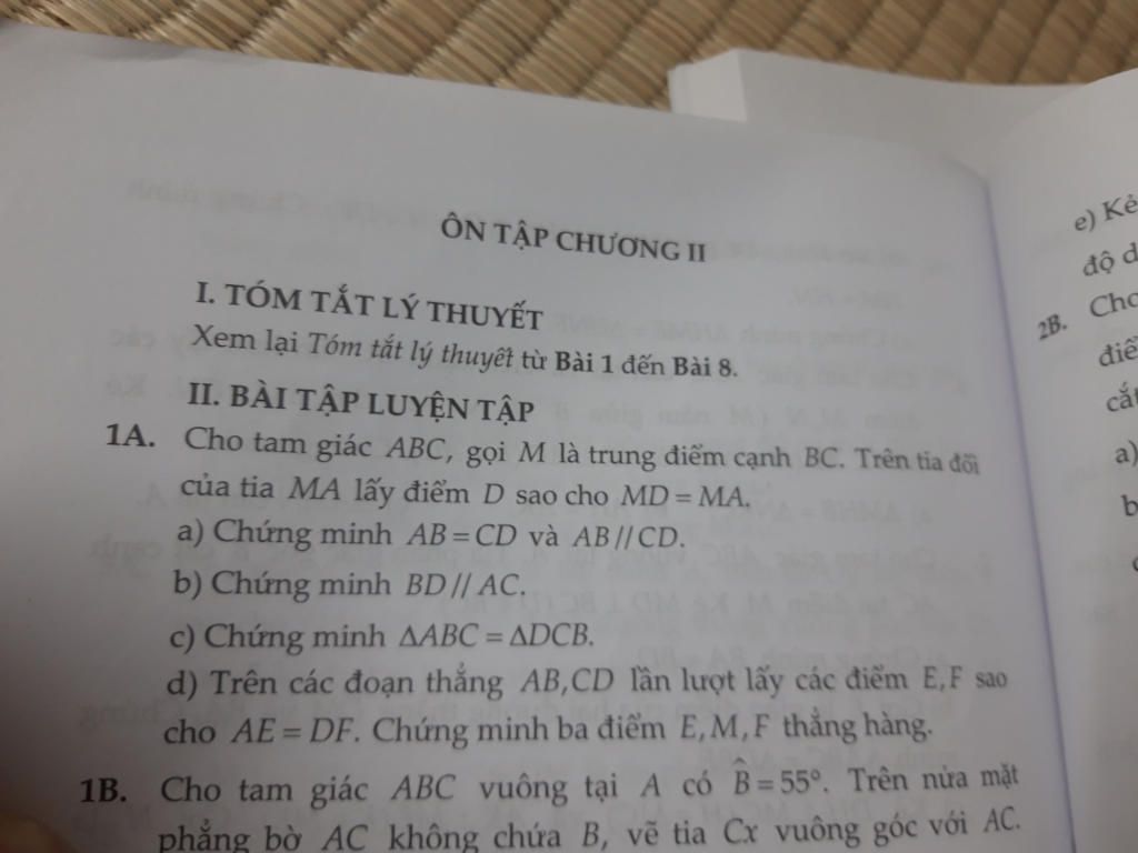 1A. Cho tam giác ABC, gọi M là trung điểm cạnh BC. Trên tia đổi