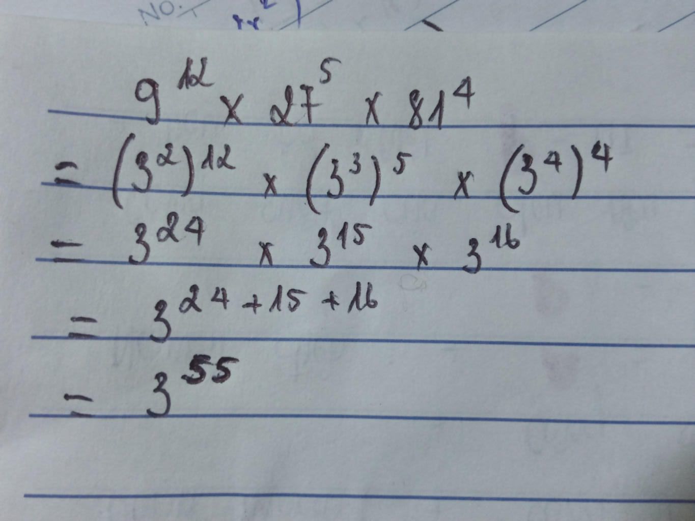 `=(3^2)^12 . (3^3)^5 . (3^4)^4`