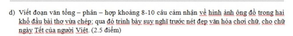Nhắc đến nền văn học Việt Nam, ông đồ luôn là nhân vật rất đỗi gần gũi và quen thuộc. Hai khổ thơ đầu đã mô phỏng lại ông đồ lúc phồn thịnh, vàng son nhất. Mỗi năm khi hoa đào nở báo hiệu xuân đã về, ông đồ như thường lệ vẫn ngồi nơi góc phố nhỏ nhộn nhịp, bày mực tàu giấy đỏ đợi chờ người thuê viết. Người người đua nhau thuê viết vui vẻ. Đôi bàn tay ông đồ uyển chuyển, mềm mại trên giấy đỏ vẽ lên những nét chữ phượng múa rồng bay. Mọi người tấm tắc khen, ngợi ca, kính trọng ông như chính tâm điểm của cuộc sống. Đó có lẽ là thời khắc vui vẻ, huy hoàng nhất của ông đồ, là kí ức hạnh phúc nhất nơi ông. Qua bài thơ, ta cũng có thể thấy được nét đẹp văn hóa chơi chữ là nét đẹp quý báu của dân tộc Việt Nam ta, là việc làm linh thiêng với ý nghỉa mang lại sự bình an, may mắn cho gia đình trong ngày đầu năm mới. Những ý nghĩa đẹp về hình ảnh ông đồ năm xưa với thú vui chơi chữ truyền thống của người Việt sẽ còn mãi, dù cho thời thế có đổi thay đến mức nào đi chăng nữa!