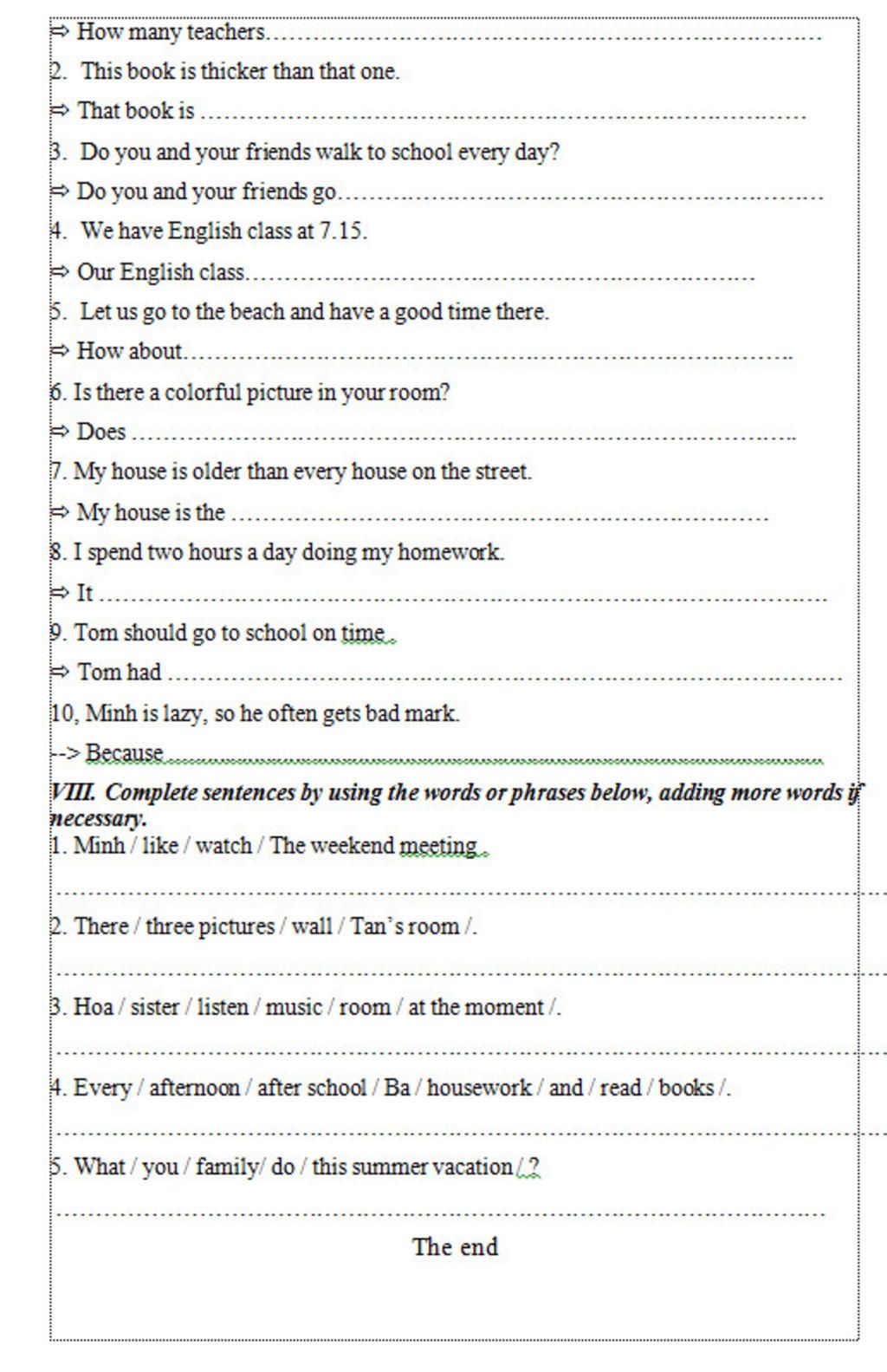 10. Because Minh is lazy, he often gets bad marks.