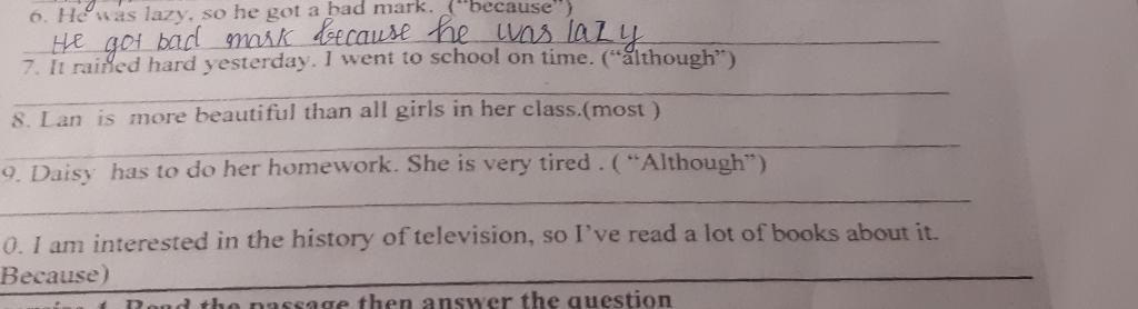 10 I am interested in history or television . Because so I 've read a lot of book about it.