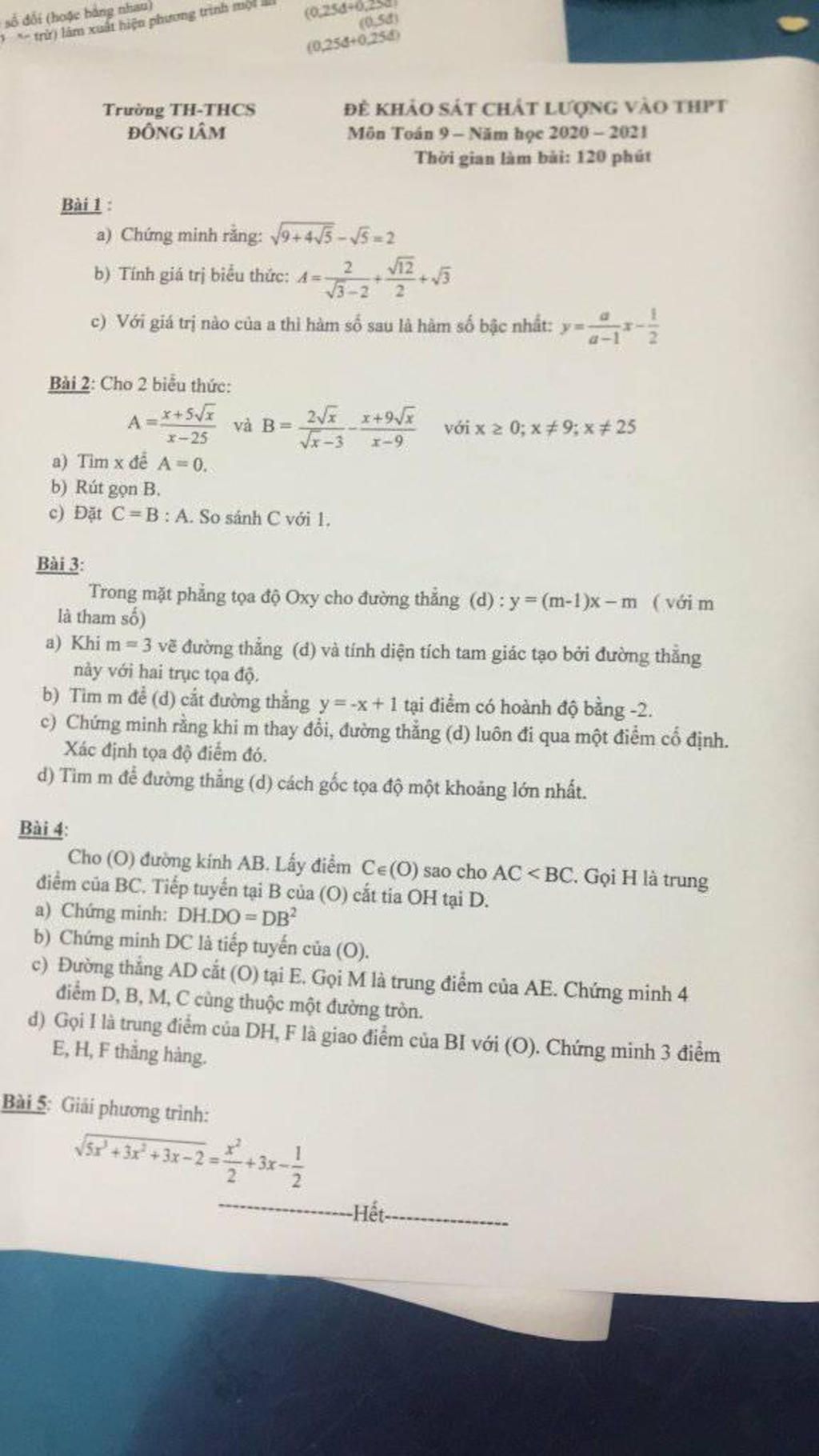 \to x = 0\left( {do:\sqrt x + 5 > 0\forall x \ge 0} \right)\\