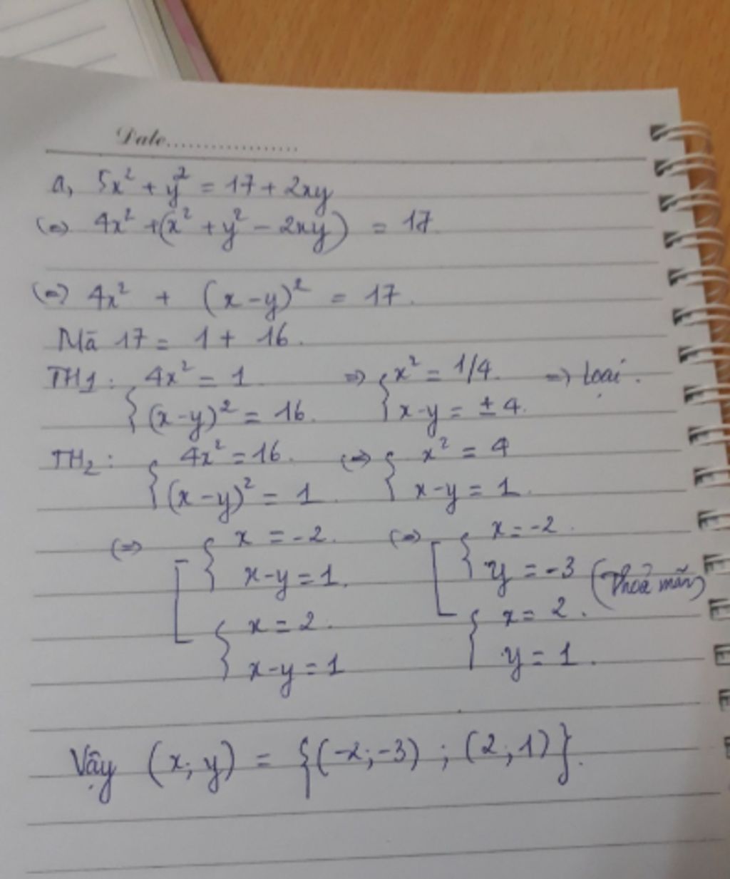 Vậy các nghiệm nguyên là: (2;1); (-2;-1); (2;3); (-2; -3)