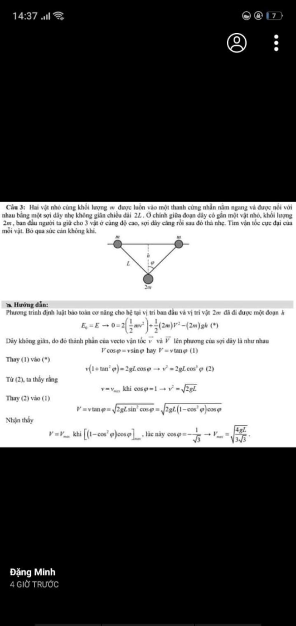 Để v max thì: $\cos \varphi \le 1 \Rightarrow {\left( {\cos \varphi } \right)_{\max }} = 1$