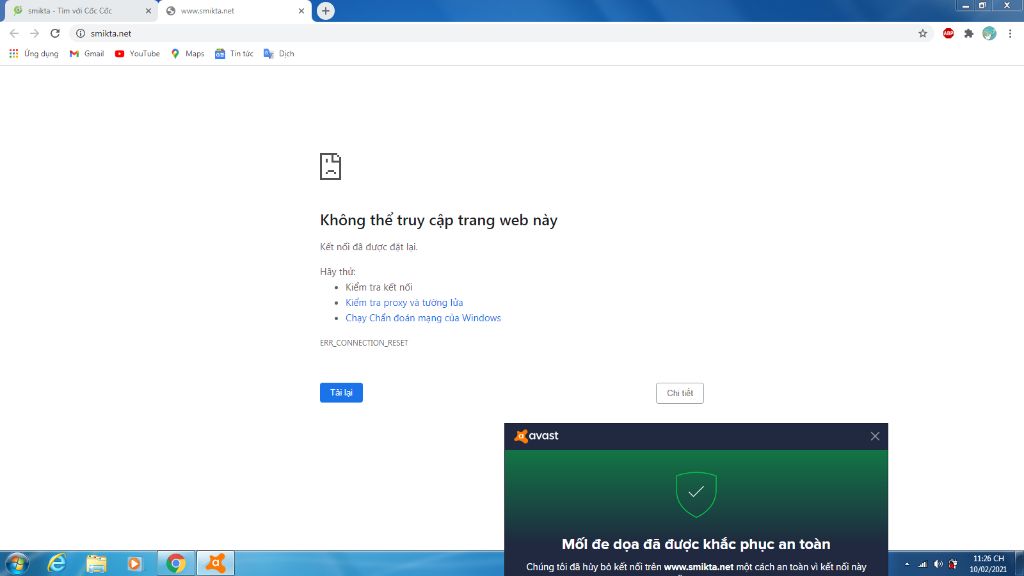 - Do kết nối của bạn tới trang web Smikta bị nhiễm URL: Fishing nên phần mềm diệt virus của bạn đã hủy bỏ kết nối đến trang này.