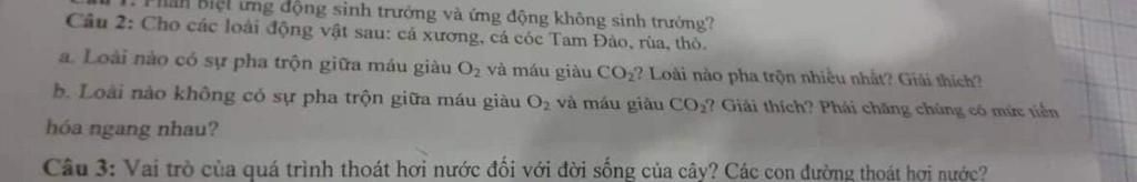 Loài ko có máu pha trộn là : thỏ : động vật có vú , tim 4 ngăn , máu ko pha