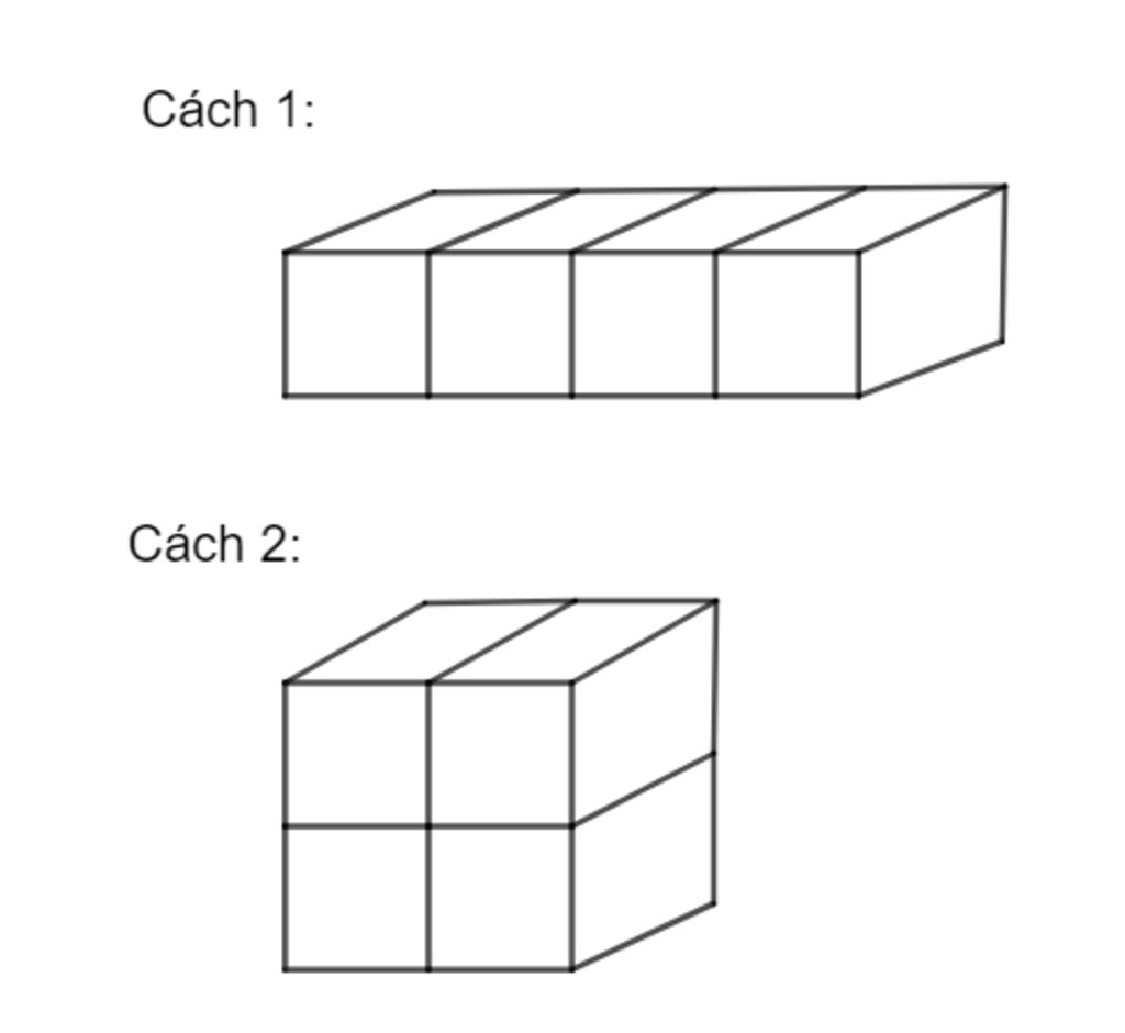 Cách 2: Xếp 4 hình lập phương thành 2 hàng, mỗi hàng 2 hình lập phương.