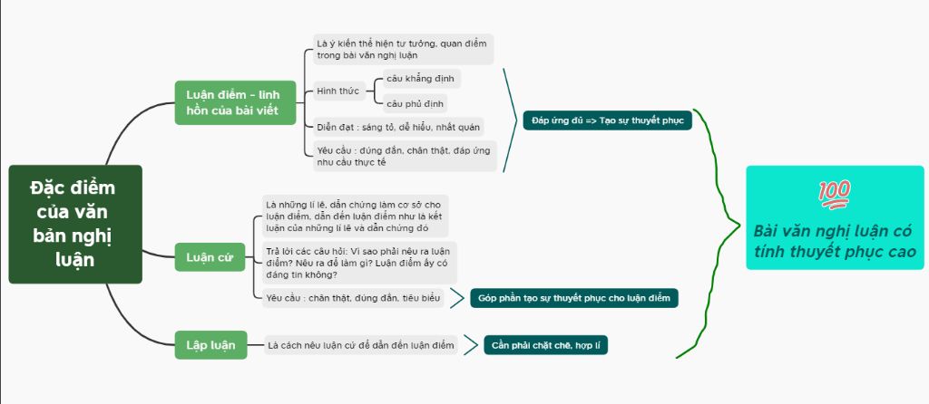 Sơ đồ tư duy về đặc điểm của văn bản nghị luận