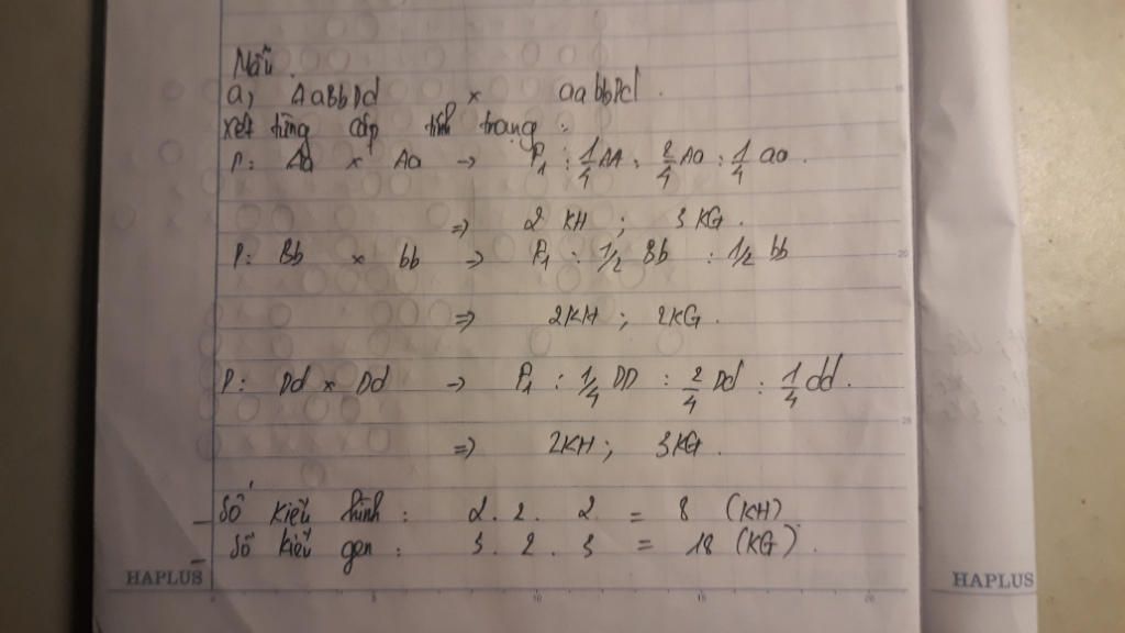 => Số kiểu gen : 2 . 2 . 2 = 8 (KG)