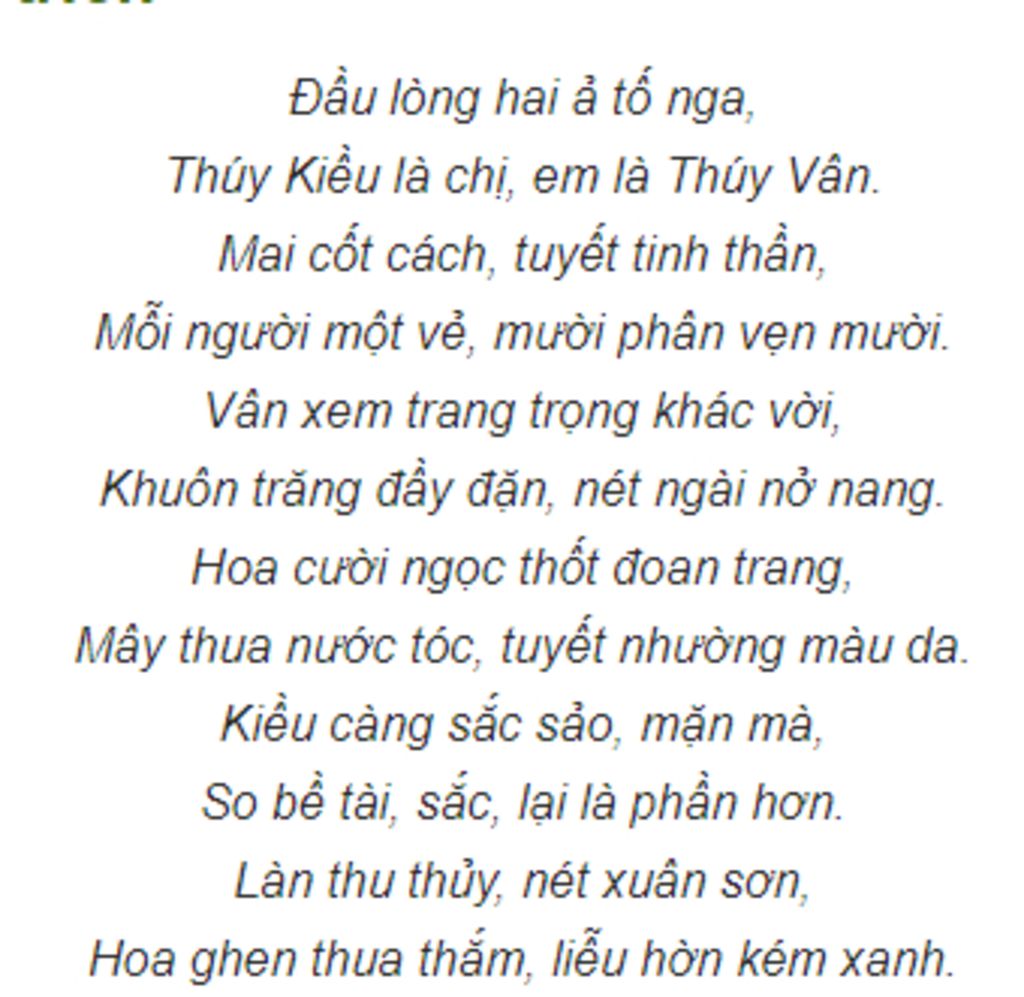 Trong thơ cổ viết về giai nhân thì đoạn thơ ''Chị em Thúy Kiều'' trích trong ''Đoạn trường tân thanh'' tức Truyện Kiều của đại thi hào Nguyễn Du là một trong những vần thơ tuyệt bút. Mười hai câu thơ lục bát đã vẽ nên sắc đẹp của hai chị em Thúy Kiều, Thúy Vân. Với ngòi bút của một kì tài diệu bút, Nguyễn Du đã vẽ nên bức chân dung hai nàng giai nhân tuyệt thế.
