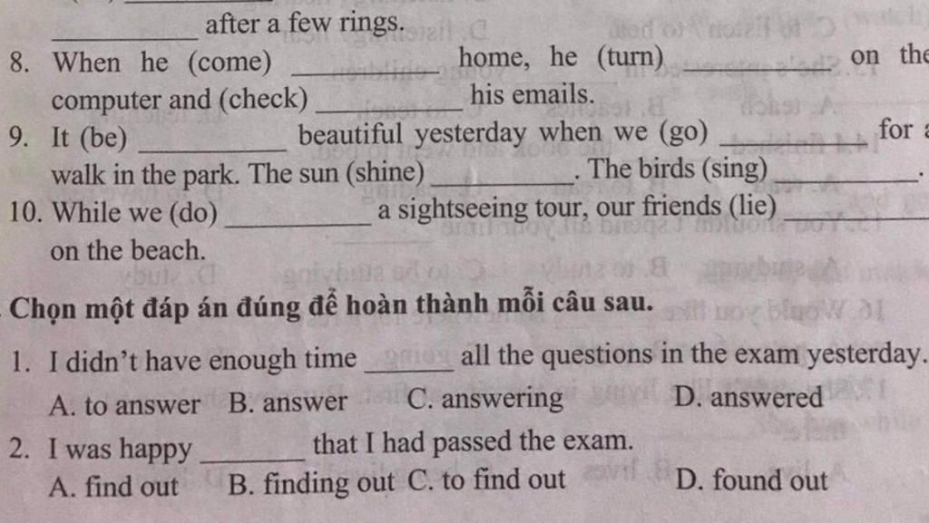 9. was - went - was shining - was singing