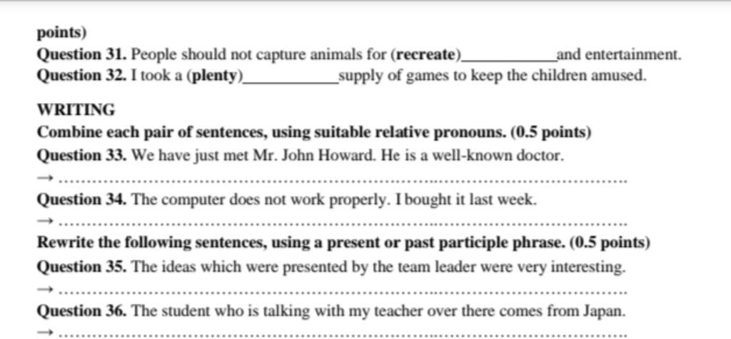 31. recreation -> and (2 từ cùng hình thức là danh từ)