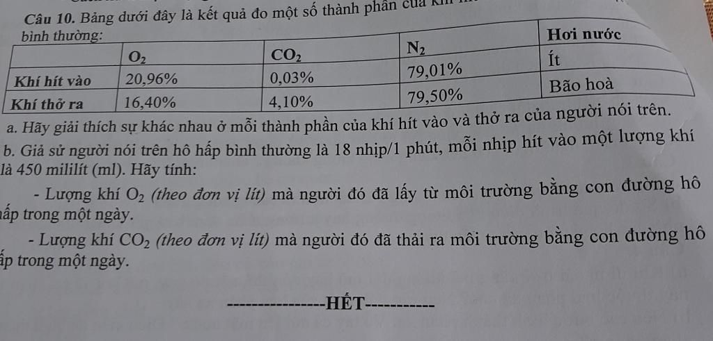 a, Giai thích sự khác nhau của mỗi thành phần khí hít vào và thở ra: