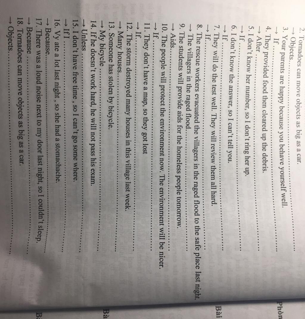 Câu 2 sai rồi Objects a big a car can be moved by tornadoes mới đúng