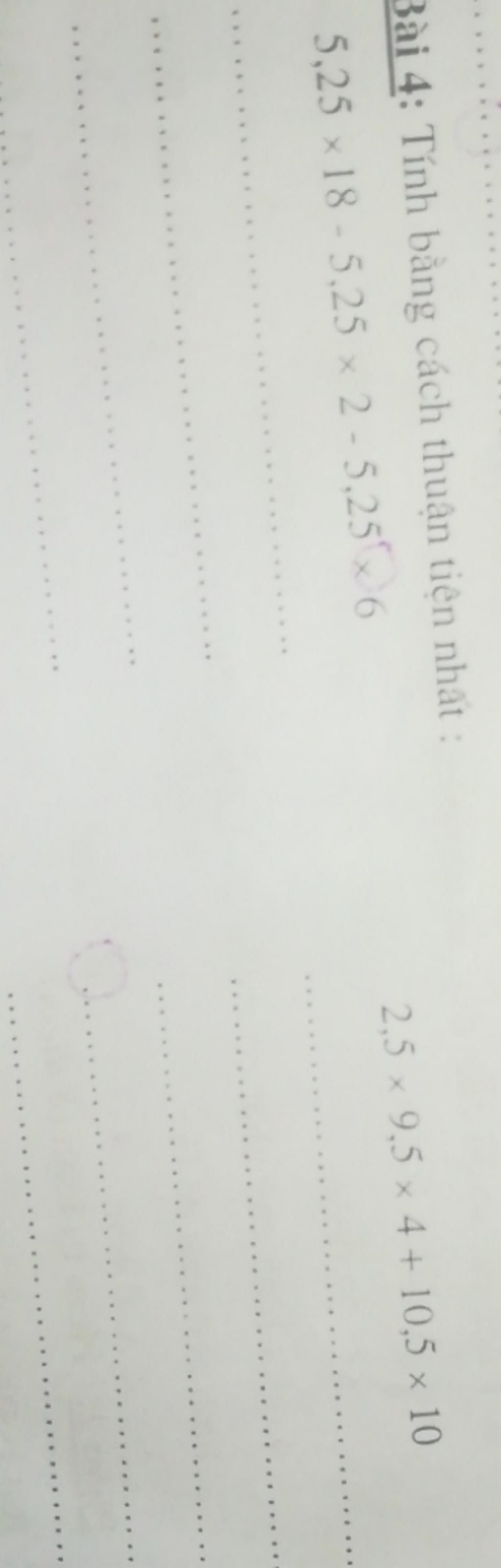 Đáp án: Câu 5,25x18-5,25x2-5,25x6=52,5