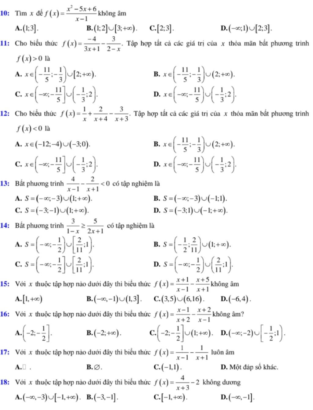 KL ; f(x)>0 khi x thuộc (-11/5;-1/3) hợp (2; + vc ) nên đáp án là : B