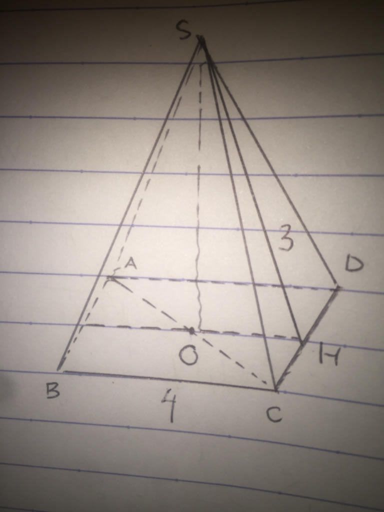 Xét hình chóp đều $S.ABCD$, $O$ là tâm đáy, $H$ là trung điểm $CD$