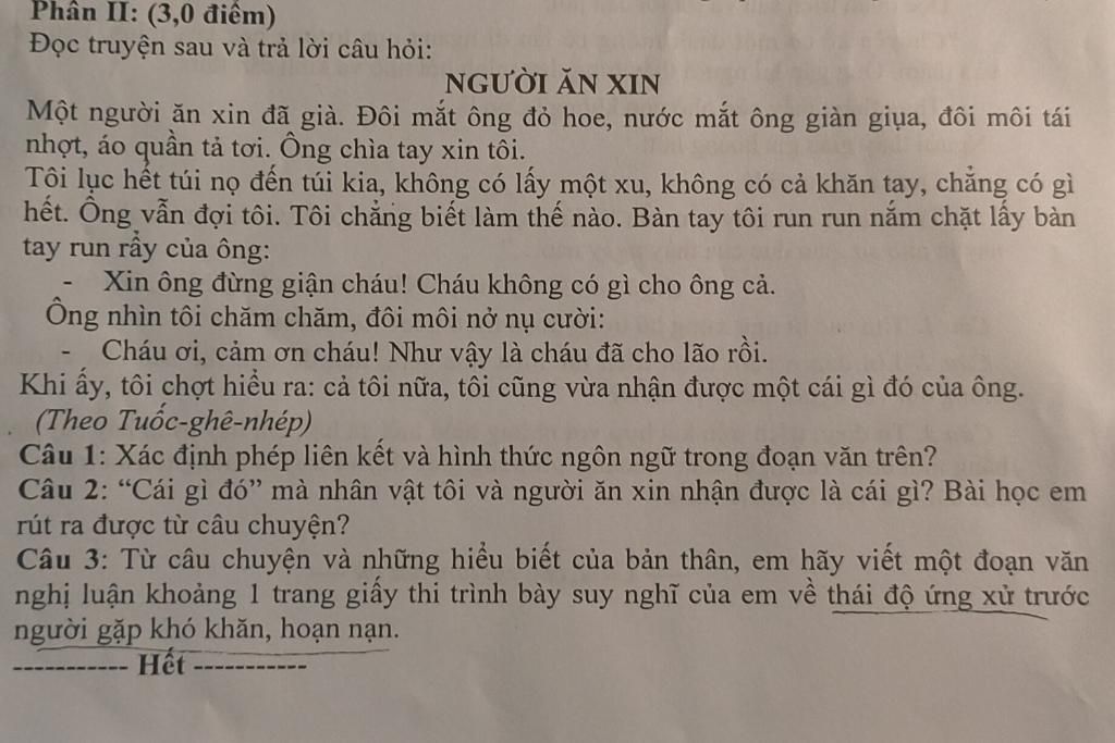 Câu 2: “Cái gì đó" mà nhân vật tôi và người ăn xin nhận được là cái gì? Bài học em