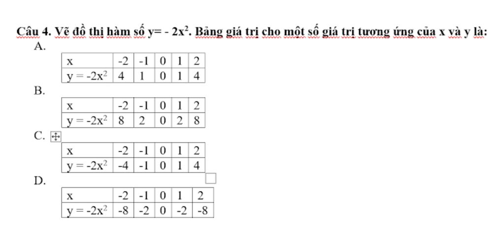\Rightarrow y = - 2.{\left( { - 2} \right)^2} = - 8\\
