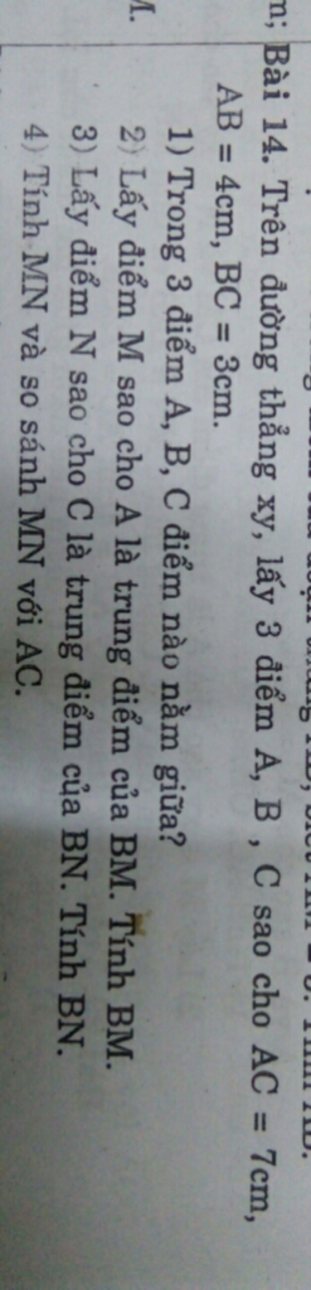m; Bài 14. Trên đường thẳng xy, lấy 3 điểm Á, B , C sao cho AC =