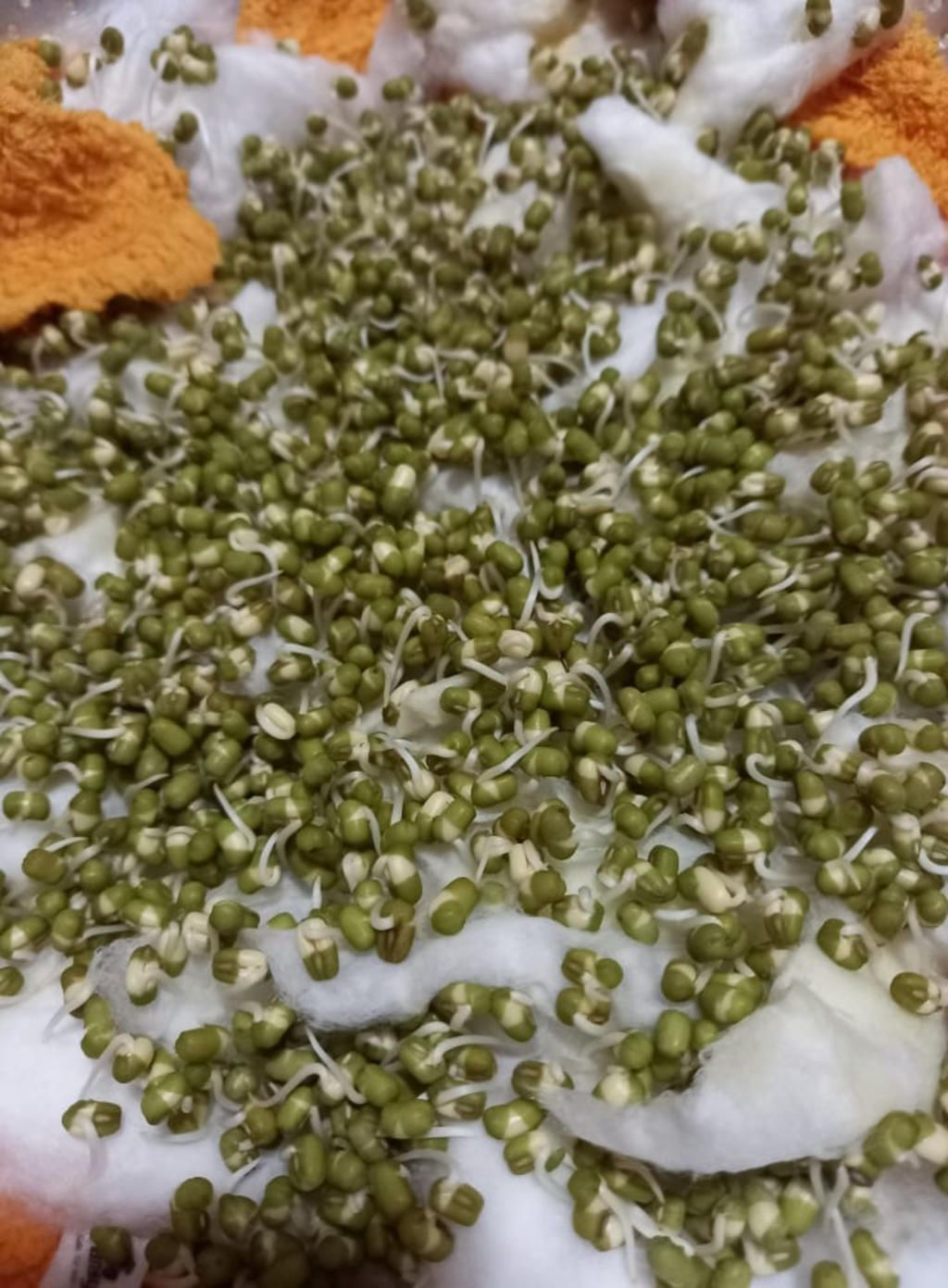 mik chỉ có trong rổ thôi ạ,vì có trong ly thì đậu xanh không nở đc vì thiếu không khí do chúng ta không đục lỗ.