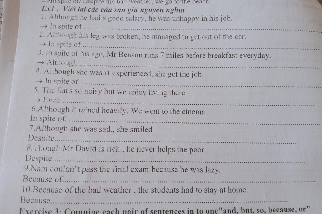 5. Eventhough the flat's so noisy but... ( câu này mình không chắc nha )