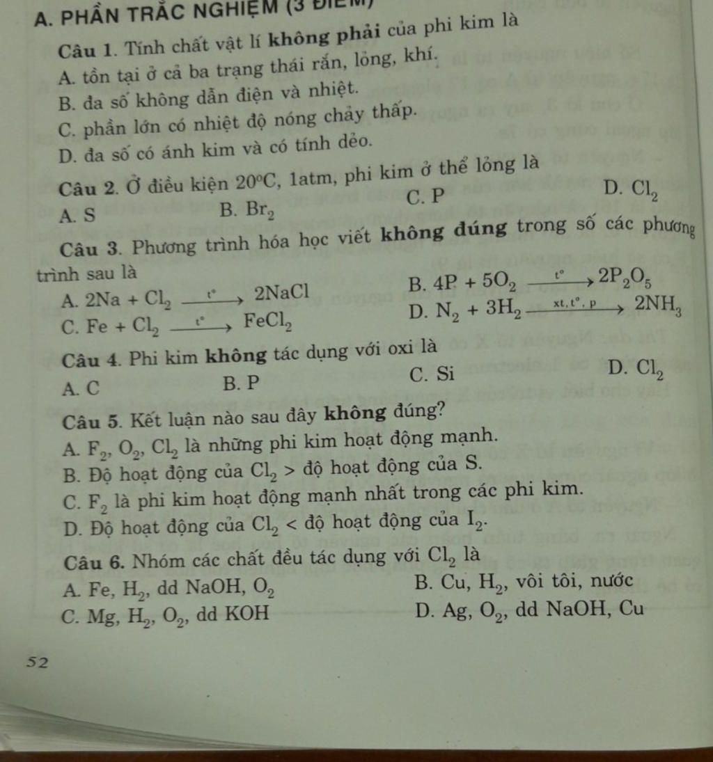 - Sục hh khí qua dd Ca(OH)2 dư đến khi pư xảy ra hoàn toàn thu đc CR là CaSO3 và hh chất khí gồm O2 và Cl2 (*)